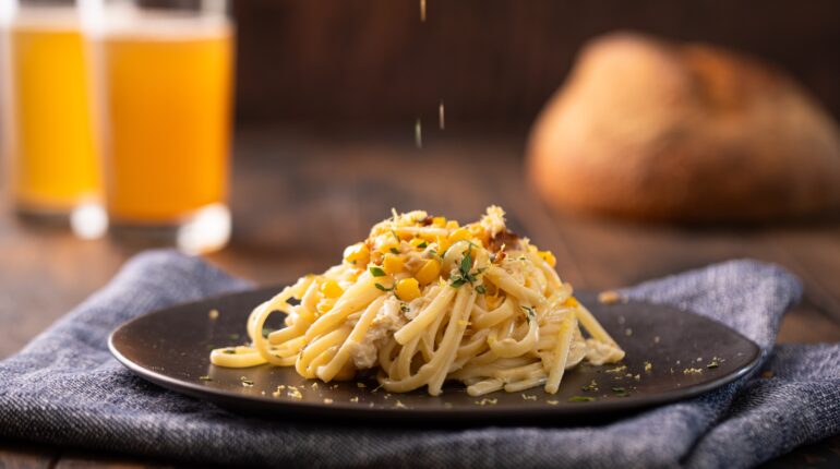 Take your pasta to the next level with this seafood pasta recipe. Sustainably-caught crab, juicy corn kernels, and a crunchy panko topping turn ordinary linguine noodles into a dish that will wow!