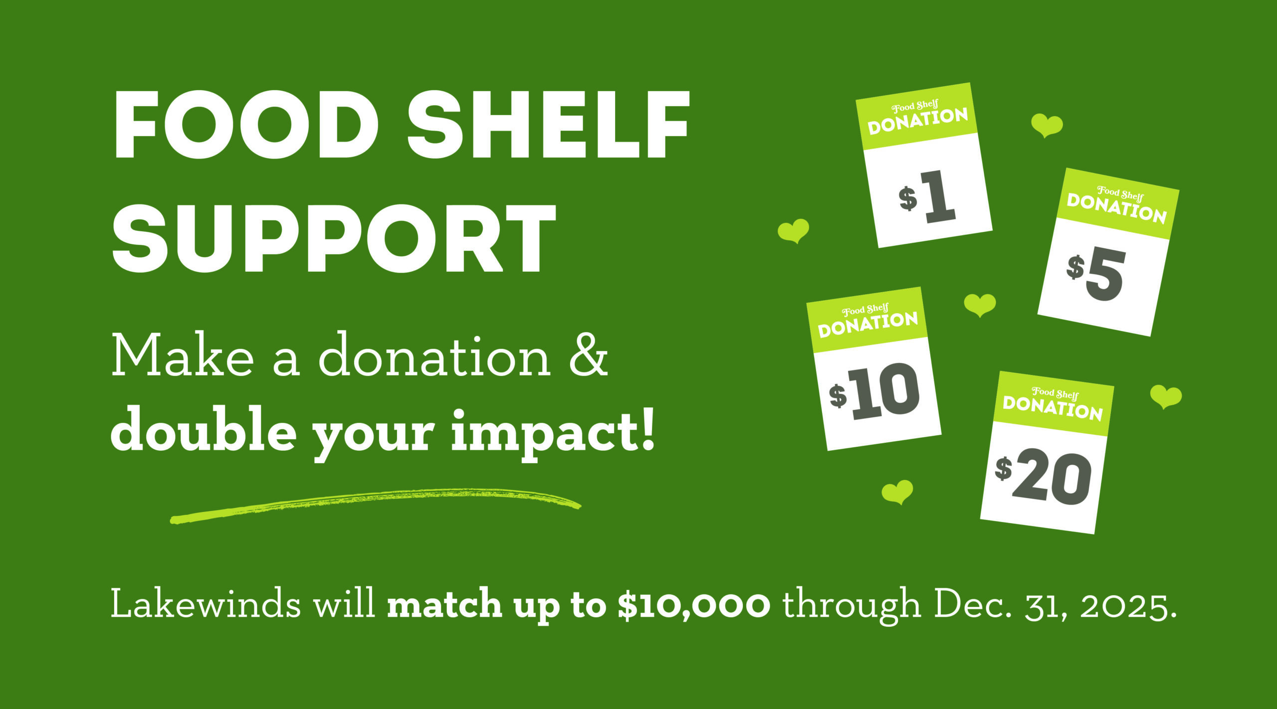 In each of our communities, there are neighbors in need. Local food access organizations have seen a spike in demand, with pressure even higher during and since the government shutdown. To help them meet the growing demand, Lakewinds will match every food shelf donation made in our store now through Dec. 31, up to $10,000. This means your generous contribution to ICA, PROP, or VEAP goes twice as far!