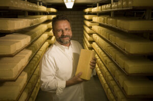 Master Cheese Maker Joe is the third-generation Widmer to oversee the family business. They’re best known for their classic Wisconsin brick cheese, particularly the award-winning aged cheddar.