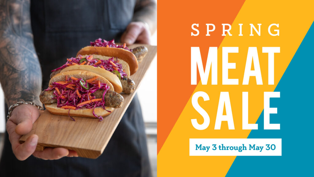 From May 3 to 30, 2026, enjoy deep discounts on sustainably raised meats — just in time for grilling season. Details will be added below starting in early April. Please note that the most popular items will likely sell out, so shop early if you plan to stock up on your favorites. Then start dreaming of summer socials, park picnics, and backyard barbecues!