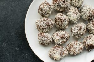 Dark Chocolate Almond Butter Coconut Date Rolls