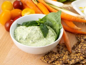 Fresh, bright, and creamy, this dip is perfect for gatherings all year round. Spend more time enjoying the season and less time in the kitchen — no cooking is required! Pair this with whatever veggies are currently in season or spread on your favorite cracker.