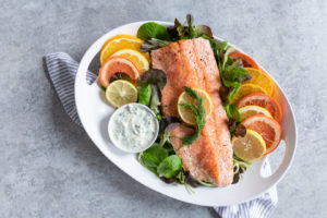 Slow Roasted Citrus Salmon with Lemon-Mint Yogurt