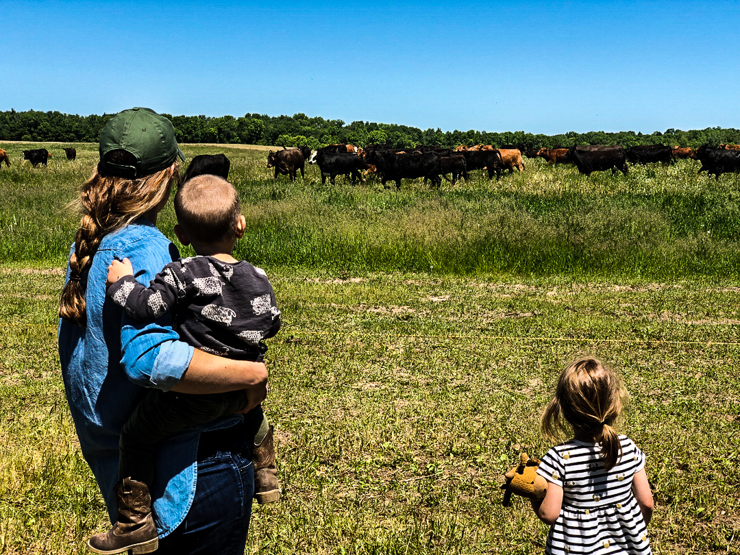 Peterson Craftsman Meats-Mom and kids looking at cattle hor 4