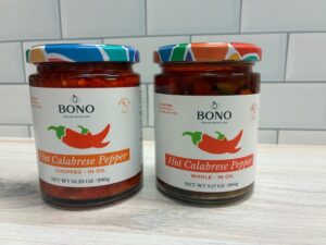 Calabrian peppers are vibrant, fiery red chili peppers from southern Italy, and Bono offers them chopped, jarred in oil. Antipasto appetizers are an easy use for these, but consider adding them to your favorite pasta dishes — a tablespoon will give your marinara a kick without overwhelming the other flavors. And don’t forget, the oil is an ingredient in and of itself. Next time you’re making garlic bread, panini, or grilled cheese, brush a little calabrese pepper oil on the bread for an unexpected zing.