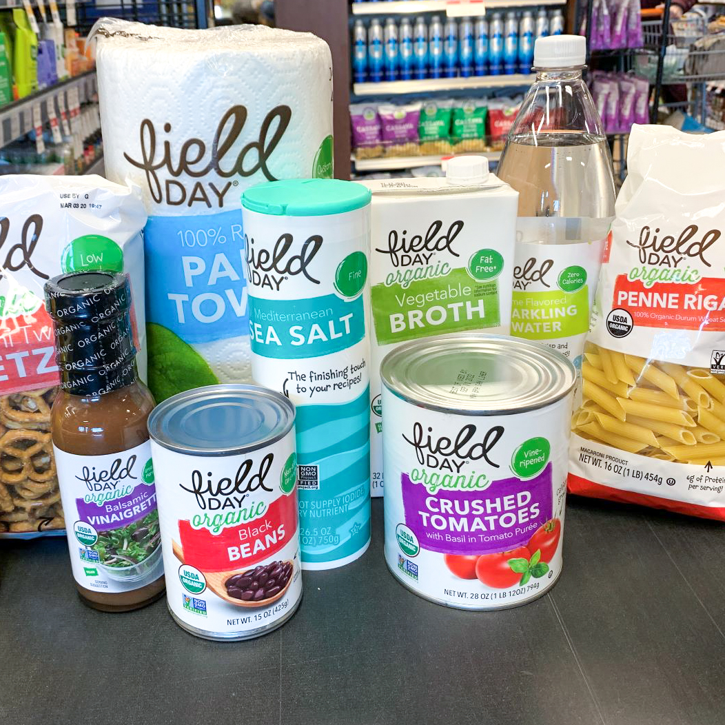 Field Day makes a number of grocery items on your list, including non-GMO verified and certified organic pantry staples at a reasonable price. Look for items such as pasta, peanut butter, canned beans, broth, cereal, and more, in packaged grocery. Fill your pantry for less.